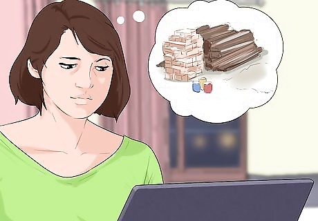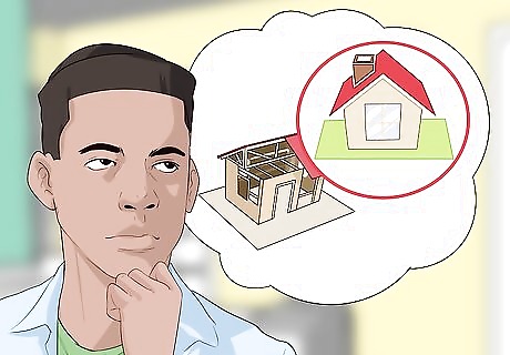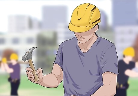Work for your construction company. Many contractors have barter systems in place where people can work on the house they’re having built in exchange for a slightly reduced rate. If you feel comfortable swinging a hammer, painting the exterior or interior, or doing some basic landscaping, you could propose the idea to your construction company. You might ask, for instance, “Would it be possible for me to contribute to the home-building process in exchange for a reduced contract cost?” You don’t need to build the whole house yourself. You could choose to just take on particular tasks you know you can handle, such as the painting or lighting installation. Don’t take on tasks you don’t feel adequate to tackle.