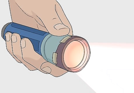 Minimize any lights you use on the beach at night during nesting season. Sea turtles are guided by the light of the moon at night. Artificial lights, such as flashlights, outdoor beach house lights, or headlights, as well as the light from bonfires can disorient sea turtles while they are nesting and hatching. If you want to use flashlights on the beach at night, place red cellophane over the light. Nesting turtles can be drawn to crawl towards bonfires, which can be dangerous. Pay attention to posted signs, which will often alert you to nesting season and note that bonfires are discouraged.