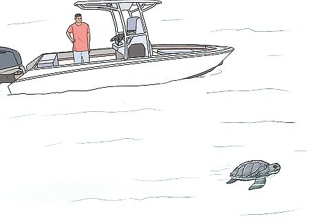 Watch out for sea turtles if you are boating. Sea turtles have to come up to the surface of the water for air. They can be difficult to see, but hitting a sea turtle with a boat can cause a serious injury. If you are boating in an area where there are sea turtles, slow down and keep watch. Give sea turtles at least 150 feet (45 m) of space in the water.