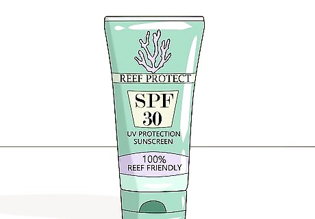 Avoid sunscreen with oxybenzone. When this chemical washes off of your body, it can kill coral reefs and pollute sea turtle habitats. Look for sunscreens that are labeled as reef safe, or check the ingredient list if you want to be sure. Sprayable sunscreens can also pollute sea turtle nests. If you prefer spray-on sunscreen, put it on indoors.