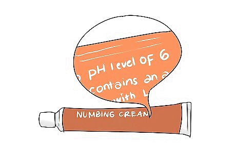 Purchase a Numbing Cream with a pH less than 7. Clinical evidence suggests that topical anesthetics that have a pH in the alkaline range greater than 7 should not be used as a numbing agent for tattoos. Alkaline agents alter the surface properties of skin and, therefore, have the potential to alter the pigment and ultimately the tattoo’s color. A numbing cream that alleviates the pain of getting a tattoo, but leaves you with a tattoo which is distorted or dull defeats the purpose of getting a tattoo. It is not always easy to discover a numbing cream’s pH.