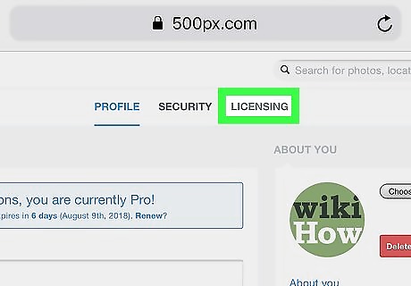 Tap Contribute to 500px Licensing. This displays all the images you have uploaded to 500px. Images need to be at least 3000 pixels wide or tall to be eligible for licensing. If a photo is not large enough, tap "Choose file" to upload a high-resolution version of the image.