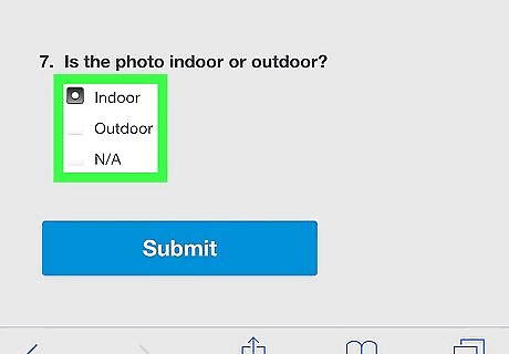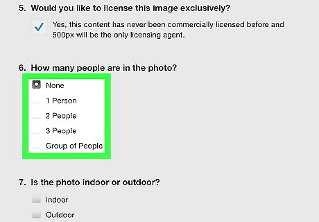 Tap the checkbox for how many people are in the photo. To indicate how many people are in the photo, tap the checkbox next to none, 1, 2, 3, or Group of people in section number 6.