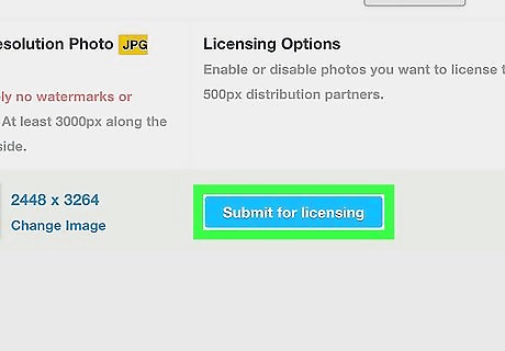 Tap Submit. It's the blue button at the bottom of the page. Your image will be reviewed by 500px. If it meets all the qualifications, the photo will be accepted for licensing.