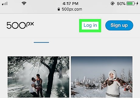 Tap Log in. It's in the upper-right corner of the web page. This takes you to the login page. If you don't have a 500px account, tap Sign Up to the right of "Log in". You can create an account with your Facebook or Google account, or sign up with your email address.