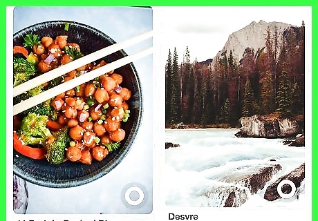 Browse for a pin. You can send a pin from anywhere on Pinterest. To view your own pins, tap the profile icon (a grey outline of a person’s head and shoulders) at the bottom-right corner of the screen. To send a pin posted by someone else, use the search bar at the top of the screen, or browse by category.