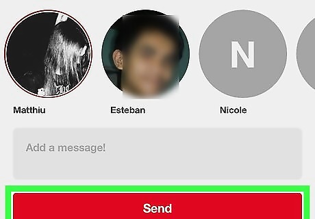 Tap Send. Your pin is now sent to the selected recipient. If you sent the pin using a different app (e.g. Facebook, Messages), a link to your own Pinterest board will also appear in the message.