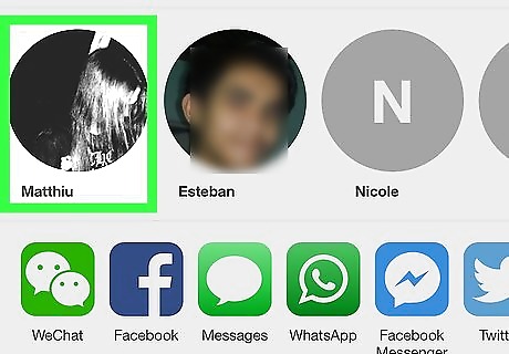 Drag your finger to the iPhone Share icon. It’s inside of the red circle. Make sure you’re sliding your finger on the screen—lifting your finger will make the icons disappear.