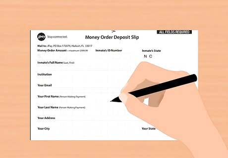 Fill out any necessary forms. Each service has a form you must fill out with information including your name and address and the inmate's name and identification number with the department of corrections. If you have any questions about how to fill out the forms, visit the department of corrections website or call prison staff. Employees at the payment service location may not be able to help you.