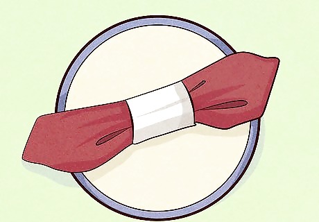 Roll your napkin in a napkin ring. Napkin rings can be found at home supply stores and boutique shops. You can also buy customized napkin rings online or make your own at home. Simply fold the napkin in half lengthwise, roll it up, and slide it through the napkin ring. The ring will keep the napkin rolled and beautiful. While eating, place the napkin ring on the top-left side of your table setting. The rolled napkin can be set on the plate or to the left of the placemat.