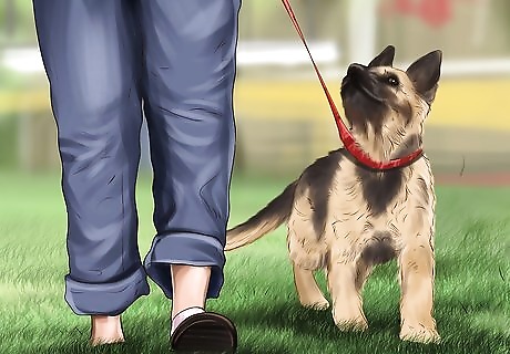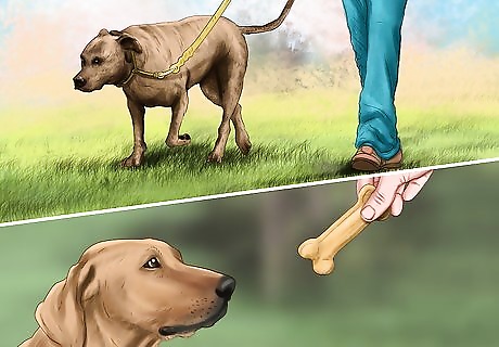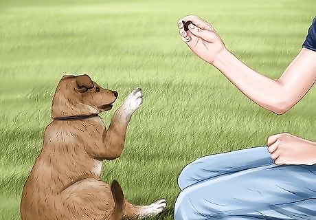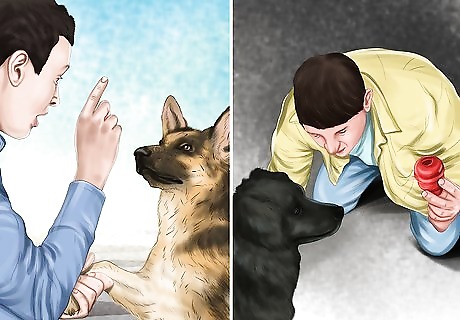 Use positive reinforcement. Once you establish your authority and set the ground rules, it’s important that you use positive reinforcement as you teach your dog the ropes. Positive reinforcement can come in many forms, such as extra attention, a walk, or a treat when your dog does a good job following the ground rules.