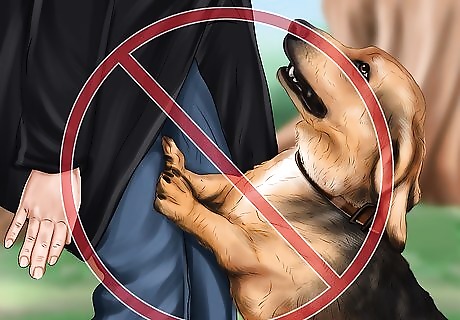Do not let your dog jump on people. An important ground rule to establish with your dog is the prohibition of jumping. While jumping up is a common way for dogs, especially puppies, to greet people, it’s critical that you stop this behavior in your pet. When you come home from work, do not give your dog any attention until they sit and stay. If they jump on you, continue ignoring them until they follow your commands. Then reward them with attention by petting them or giving them a treat.