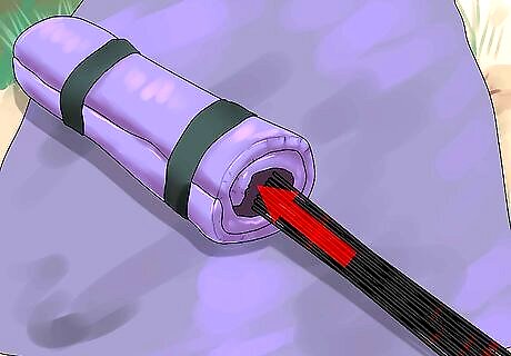 Roll up the tent and rain fly. Never fold a tent, as you would a shirt or a flag. To avoid folding creases into the tent, you want to stuff or roll them into the stuff sack included with the tent. This will help keep the tent solid and waterproof, making it an essential maintenance step in the life of the tent. Stuff in the tent and the rainfly into the stuff sack before you put anything else in.