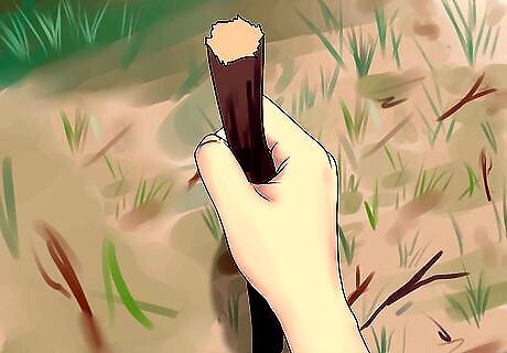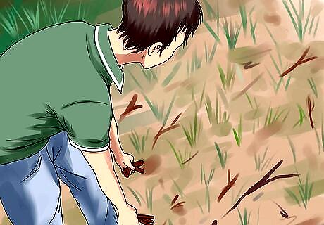 Clear loose debris from the tent site. When you've selected your ideal location, spend a few minutes clearing any significant rocks, branches, or other debris from the campsite. After you set up your tent, it'll be too late to dig out that rock that's digging straight into your kidney in the middle of the night. Do some work ahead of time and you'll set yourself up for a much more comfortable sleep. If you can, look for areas dense with pine needles, if you're in an environment with fir trees. Pine needles can provide an excellent and soft natural mattress, which can help to keep your comfortable.