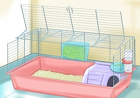 Purchase a cage with good ventilation. Enclosures with glass sidings, such as aquariums, do not provide adequate ventilation for your rabbit. A cage with wire siding provides good ventilation. Make sure that the wire spacing is not wide enough for your rabbit to get any of his body parts stuck in. In addition, make sure the wire siding is not coated with plastic—your rabbit could easily chew through the plastic coating.