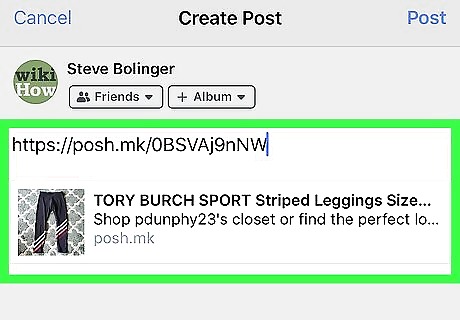 Paste the copied link anywhere to share the listing. Once you copy the listing's direct URL link, you can paste it anywhere to share with your friends. Anybody with the link will be able to open and view this item on Poshmark. To paste the link, tap and hold any text field, and select Paste on the menu.
