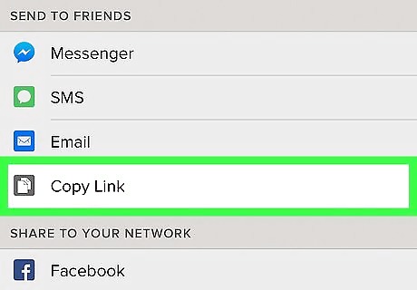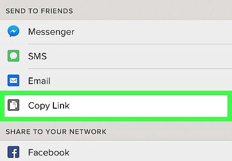 Tap Copy Link on the sharing menu. You can find it under the "SEND TO FRIENDS" heading. This will copy the item listing's URL link to your clipboard. To share the listing with your Poshmark followers, tap Share next to "My Followers" on the top-right. You can also tap a follower's picture below "My Followers," and instantly send the listing to them in a private message. Alternatively, you can select SMS, Email, or a social media option. This will redirect you to the selected app, and allow you to share your listing here.