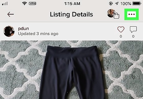 Tap the three dots icon on the top-right. You can find it in the upper-right corner the listing details. This will open your options on a pop-up menu. Alternatively, you can scroll down, and tap the Share button on the bottom-right corner of any listing.