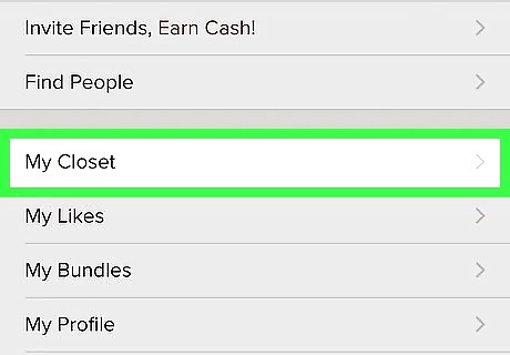 Tap My Closet. You can find it at the top of the third block of options on the menu. It will open your profile. You can find all your active listings here.