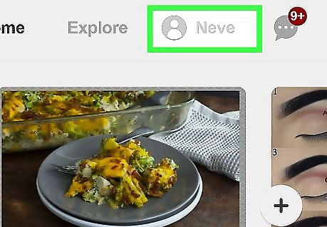 Click Saved. It's near the top-right corner of the screen. This opens your profile and displays your boards. If you don't see this option, click the gray outline of a person instead.