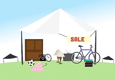 Utilize other discount shopping venues. Thrift stores are not the only source of bargain shopping. Flea markets. Show up early— 6am is a good start. Do a sweep for furniture items first, picking and choosing what you want. Don't be afraid to haggle, but be fair to the seller. Once you've found furniture and larger items, load them and look for smaller items-- furniture, accessories, clothing, etc. Consignment stores. These are a type of second-hand store that purchases clothing from sellers as opposed to selling donations. This makes them more expensive than thrift stores, but they are a dependable source of well-made, discounted, name brand clothing that is in fashion at the time of purchase. Neighborhood yard sales. While yard sales occur in every city almost every weekend, in order to maximize shopping and save time, look for neighborhood yard sales. These often take place in a single location, like a church or school, or span several blocks, with people selling from their own yards. These are a great way to find furniture and antiques. Estate sales. The ultimate source for gently used antiques, ranging from furniture and dishes, to jewelry and quilts. These take place literally on the "estate" where a person lived and require a little more foreknowledge and research in order to get the best deals.