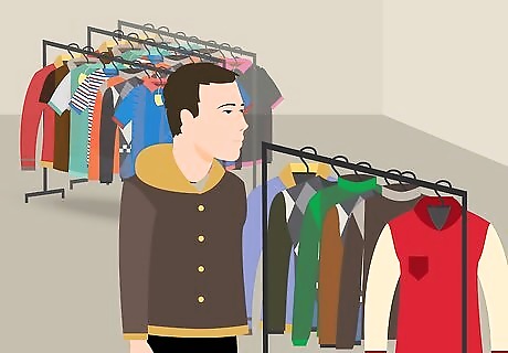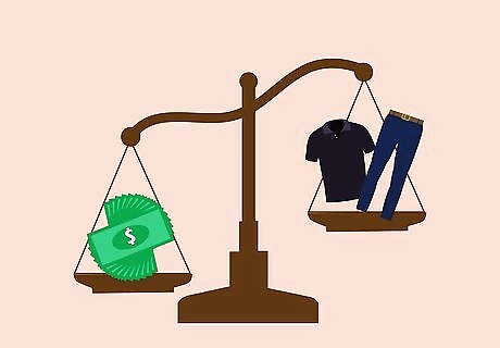 Try things on. Without trying clothing on, it is difficult to tell whether it is worth your money. Ask for a fitting room with a mirror or a convenient restroom. Dress in form-fitting attire in case a fitting room is not available. That way you can try on clothing over your existing clothes. Leggings and sports bras can be useful in this. To eyeball if a garment will fit around your waist without trying it on: button it, and then wrap it around yourself from bellybutton to spine.
