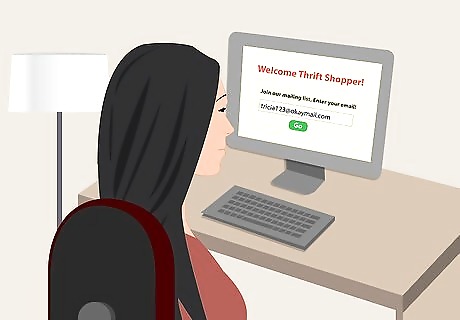 Get on email lists and shop online when possible. Most chain thrift outlets like Goodwill and the Salvation Army will put you on a mailing list for coupon and sale opportunities. These same stores often take pictures of furniture and other "in demand" items and post them online. Reviewing online offerings before shopping can save you trips around town.