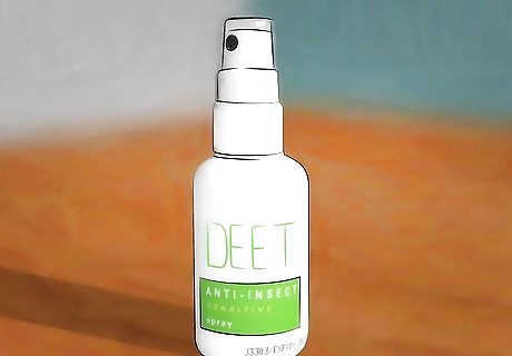 Use bug repellents on exposed skin and clothing. Spray a mosquito repellent containing DEET, picaridin, or oil of lemon eucalyptus (OLE) all over your clothes and any exposed areas of your skin, such as your neck and hands. You can also spray it on your hands and then pat it onto your face and hair. The most effective repellants contain DEET (N, N-diethylmeta-toluamide) or picaridin, and these are widely available in most drugstores. Take care not to inhale the repellant or get it in your eyes or open wounds. EPA-approved insect repellents, like those containing DEET or picaridin, are considered safe for children and for pregnant or breastfeeding mothers. However, if you have any concerns, talk to your doctor. Shower to wash the spray off your skin when you no longer need it.