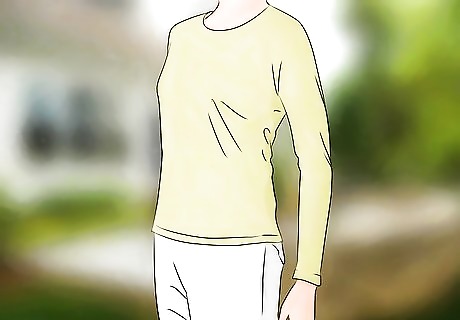 Wear long pants and long sleeves to cover your skin. Put on protective clothes to reduce the amount of skin available to bite. This may make you a less attractive target. Though mosquitoes do bite through clothing, it should reduce the number of bites you get.