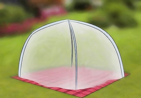Sleep under a mosquito net if there are no screens on the windows. This will prevent you from getting bitten while you sleep. Tuck the net under the mattress so that you leave no openings for mosquitoes to fly through. Check the net frequently and repair any holes. You can also purchase a personal mosquito tent that you can place directly on top of your bed.