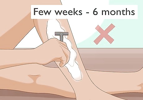 Stop removing the hair in the affected area for a few weeks. Ingrown hairs will often clear up on their own, but you need to let your skin rest for a while so it can heal. If possible, don’t shave, wax, or tweeze the area until your ingrown hairs heal up. This may take anywhere from a few weeks to 6 months. If you really feel the need to remove hair in the area, try using a gentler method, such as electric clippers or a hair removal cream.Tip: To remove hair from the area more permanently and prevent future ingrown hairs, consider getting laser hair removal treatments.