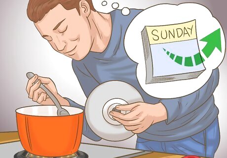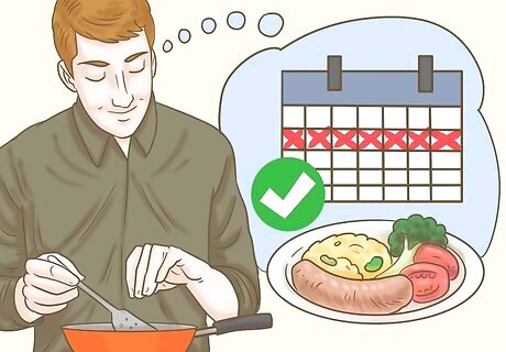 Prepare meals on Sunday for the entire week. Many people claim that preparing meals beforehand is the key to success with the Whole30 diet. When you go grocery shopping, be prepared with your list and know what you’re going to make for the whole week. Then, prepare your lunches and dinners beforehand so all you have to do is heat them up! The Whole30 program provides followers with a grocery list and access to some meal planning resources, but it’s easy to plan your own meals with just a pen and paper!