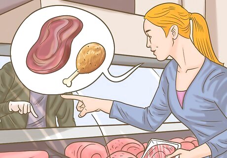 Buy meat and poultry of different varieties. The main source of nutrients and protein in this diet comes from meat and poultry, and some type of meat is the central ingredient in almost every meal. Look for organic and grass-fed beef, pork, and chicken that are unprocessed. Eggs are considered poultry, as well, and can help you to make a variety of breakfast foods! Be sure to check the packaging to make sure there are no added sugars or preservatives.