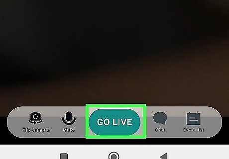 Tap Go Live. It’s the blue button at the bottom. This will start streaming live. Use the options at the bottom of the screen to control the live stream. Tap the Camera icon to switch between your front-facing and rear-facing camera. Tap the microphone icon to mute and unmute the camera. Tap the speech bubble icon to display the chat comments. Tap the calendar icon to display events and alerts.