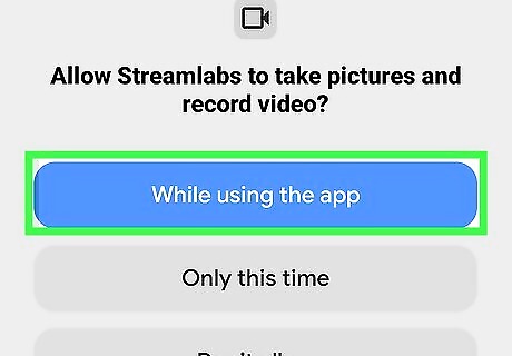 Allow Streamlabs to access your camera. Tap Allow or Allow when using the app to allow Kick to access your Camera and microphone.
