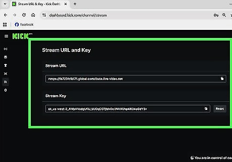 Retrieve your stream URL and streaming key. If you want to stream with OBS, you’ll need your streaming key in order to connect your account. Use the following steps to retrieve your streaming key: Log in at Kick.com. Click your profile icon in the upper-right corner. Click Creator Dashboard. Click Channel in the menu bar to the left. Click Stream URL & Key. Click the eyeball icon next to the stream URL or key. Retrieve the verification code from your email. Enter the verification code. Leave this page open in a web browser tab (don’t share your stream key with anyone).