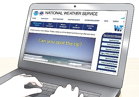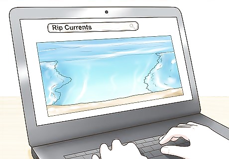 Look up example images online. One easy way to familiarize yourself with a rip tide is to look up videos and images of rip tides. Look for perspectives from the shore for a more accurate idea of what to look for.