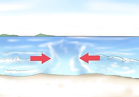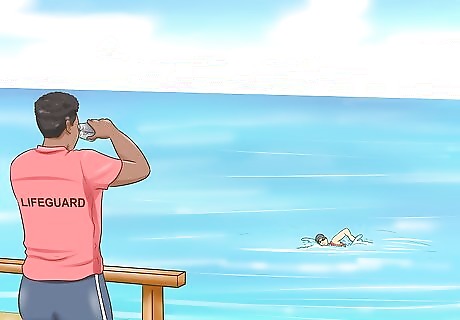 Swim only with a lifeguard present. Rip currents can occur in the water near any beach where breaking waves are present, including on large lakes. While it's a good idea to avoid swimming without a lifeguard nearby, it's especially important in these bodies of water.