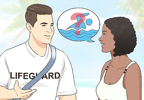 Talk to the lifeguard. Lifeguards may know where rip currents are likely to form, and whether there have been any today. Don't hesitate to ask for advice. Lifeguards may also issue warnings when a rip current is sighted, or ask swimmers to steer clear of a dangerous area. Pay attention to them.