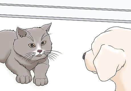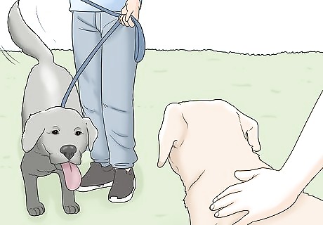 Introduce your dog to new animals and people gradually. If you’re bringing a new pet, roommate, or family member into your home, it’s important to make the introduction as positive and stress-free as possible for your dog. Always supervise interactions between your dog and the new person or animal until the dog is used to their presence, and keep encounters brief at first.Warning: If your dog tends to mark, it will be encouraged to do so more if it smells urine or sexual odors from other dogs. Keep your dog away from females in heat or areas where other animals have marked. When your dog is around the new resident, keep the experience positive by playing with your dog, petting it, and offering treats and praise for appropriate behaviors (like staying calm and obeying commands).