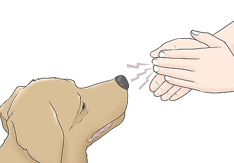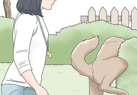 Train your dog to stay by your side in exciting or stressful situations. If your dog tends to mark when it’s excited, teach it a simple command, such as “sit” or “lie down.” When you’re in a new place or situation where you think the dog is likely to mark, use the command to calm it and prevent marking behaviors before they start. For example, you might teach your dog to sit before you take it for a walk or give it a new toy.