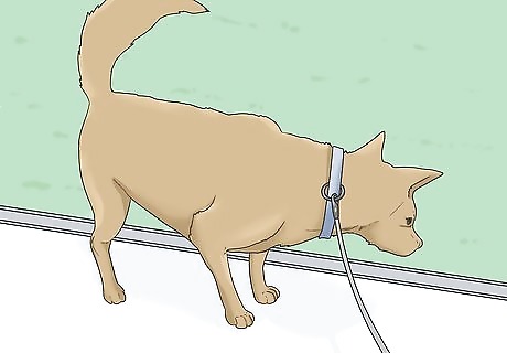 Supervise your dog around new objects or environments. If you bring a new object into your home, such as a piece of furniture or a houseplant, watch your dog closely around it. Allow your dog to sniff and explore the new item, but quickly remove your dog from the area if you notice leg-lifting or other signals that it is about to mark. Likewise, keep a close eye on your dog when it’s exploring new places (such as a new home or a friend’s apartment). You may find it helpful to keep your dog on a leash when it’s exploring new surroundings. That will make it easier to quickly get control of your dog if you see signs that it’s about to mark.