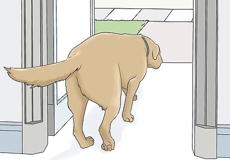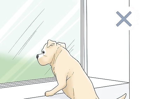 Restrict your dog’s view through windows and doors. Your dog may mark if it sees other dogs, cats, or wild animals outside. To keep this from happening, try blocking your dog’s view of the outdoors with curtains, blinds, or shades. Alternatively, keep your dog away from windows and doors that it might be able to look through when you’re not around to supervise. If you can’t keep your dog from looking out your doors and windows, look for ways to discourage other animals from coming near your home. For example, get rid of food sources (such as birdseed or unsecured garbage cans) or use sound or odor-based deterrents.