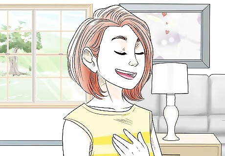 Perform loving-kindness meditation for 10-15 minutes every day. Spend some time daily sitting in silence and radiating kind, positive thoughts about yourself. You might reflect on some of the qualities from your “good things" list or merely imagine pouring love into yourself, like a mental hug. You might also progress to choosing a woman in your life to radiate positive thoughts to. Start with someone you feel warmly about. Once you've got the practice down pat, gradually radiate positive thoughts to someone who you have disliked or pre-judged in the past. Mentally extend an olive branch to her.