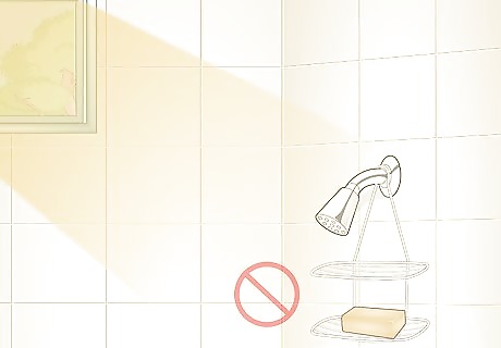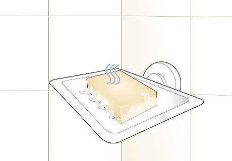 Keep the shampoo bar out of sunlight and direct streams of water. Make sure your soap dish or shower rack doesn’t receive direct sunlight during the day since it can cause the oils in the shampoo bar to melt. Place the shampoo bar away from the showerhead or tub spout so water doesn’t collect on it and cause it to dissolve. If the shampoo bar gets wet, try patting it dry with a clean towel and setting it aside so it can dry completely.