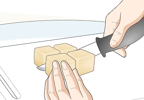 Cut the shampoo bar into quarters so you can cycle between dry pieces. Set the shampoo bar on a cutting board and use a sharp chef’s knife to cut the piece in half. Cut the 2 pieces in half again so you have 4 pieces that are the same size. Keep 3 of the pieces on a shelf or in a cabinet so they stay dry. After using 1 piece, let it dry out completely and use a different piece if you need to wash your hair again. This works great if you don’t want to travel with a full-sized shampoo bar or if it doesn’t fit in a travel case.
