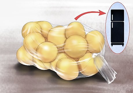Store them in the refrigerator. Oranges tend to preserve best at cooler temperatures and deteriorate quickly at warmer temperatures. Keeping them refrigerated will slow down the deterioration process and will help to maintain freshness for an extended period of time. Using a mesh or otherwise well-ventilated bag will keep the air circulating around the fruit. This will help to prolong the occurrence of mold, lesions or softened produce. Store them in your refrigerator’s vegetable bin and be sure to rotate the fruit regularly to maintain airflow. Oranges stored in a refrigerator should keep for approximately one month.
