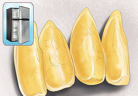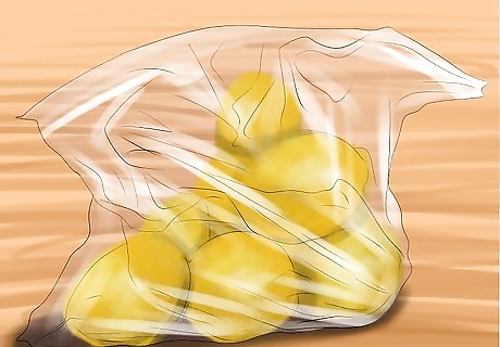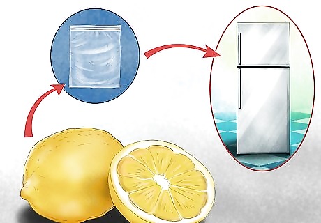 Freeze them. Lemons can be cut into quarters, with all membranes and seeds removed. Place them into plastic bags and freeze. Use them within three months as the longer they are stored, the more bitter they become. If you regularly use lemon slices for water or tea, you can freeze lemon slices by laying them out on a cookie sheet and setting them in the freezer for a few hours. Once they are solid, place them into a ziploc storage bag.