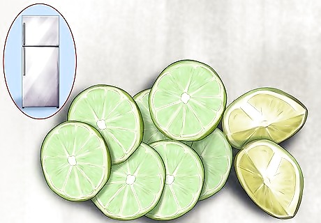 Freeze your limes. Wash, peel and cut fruit into sections, removing membranes and seeds. Freezing whole limes may result in a mushy texture when thawed.