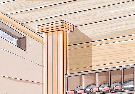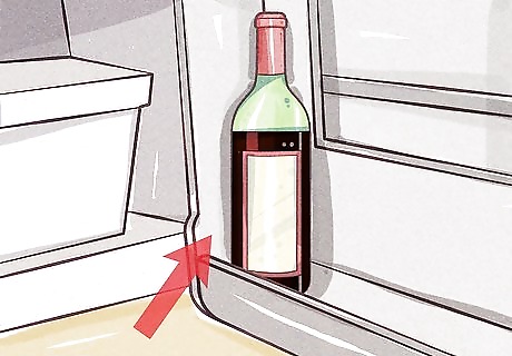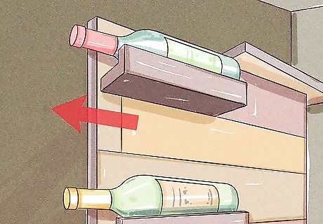 Place the wine bottle on its side in a storage rack. Dry corks may shrink, allowing oxygen to enter the bottle and oxidize the wine. By storing your wine bottles on their sides, you can keep the cork moist. If the cork stays moist, then it is less likely to dry out and shrink.